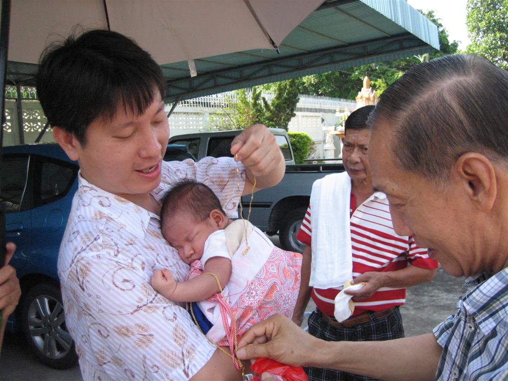 ย่ากอดหลานชาย สวมสายสร้อยให้ เป่าหัวให้เสร็จ