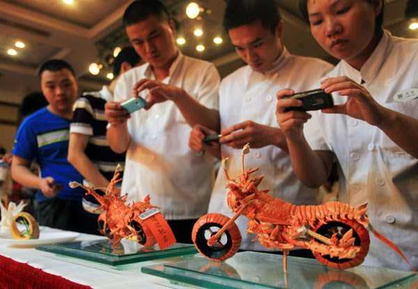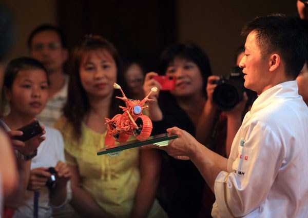 พ่อครัวชาวไต้หวันและผู้เชี่ยวชาญด้านการแกะสลักอาหาร Huang Mingbo สร้างผลงานชิ้นเอกที่น่าตื่นตาตื่นใจนี้