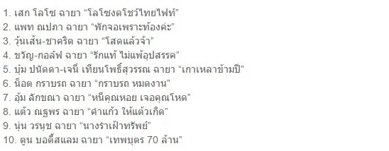 ถือเป็นธรรมเนียมของทุกปี ที่แวดวงบันเทิงจะมีการมอบฉายาให้กับดารานักแสดงที่มีเรื่องราวเด่นๆ ในปีนี้ และในปีนี้ก็เช่นกัน