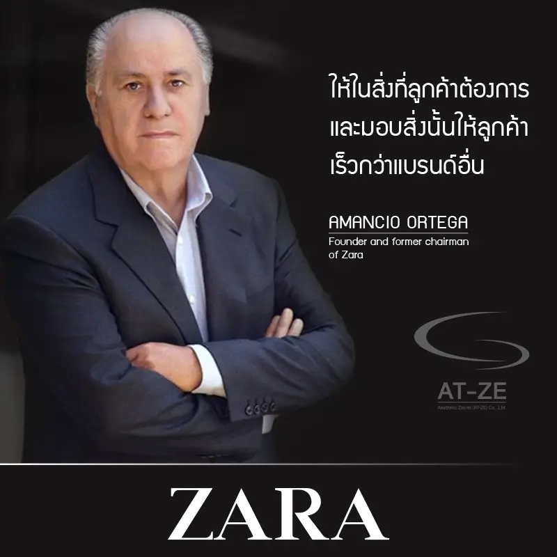 อมานซิโอ ออเตก้า (Armancio Ortega) ชายผู้อยู่เบื้องหลังความสำเร็จของ ZARA แบรนด์เสื้อผ้าชั้นนำที่ครองใจลูกค้าทั่วโลกมายาวนานกว่า 4 ทศวรรษ ซึ่งเส้นทางความสำเร็จในชีวิตของเขาไม่ได้โรยไว้ด้วยกลีบกุหลาบ ในวัยเด็กเขาต้องลาออกจากโรงเรียนตอนอายุ 13 ปี เพื่อทำงานช่วยเหลือครอบครัว เขาเริ่มต้นทำงานเป็นผู้ช่วยประจำร้านขายเสื้อผ้าในท้องถิ่น จนเมื่อเขาอายุ 16 ปี จึงจุดประกายความคิดว่า เราต้องให้ในสิ่งที่ลูกค้าต้องการ ไม่ใช่สิ่งที่แบรนด์ต้องการ และต้องมอบสิ่งนั้นให้ลูกค้าเร็วกว่าแบรนด์อื่น ซึ่งต่อมาความคิดนี้ได้กลายเป็นเอกลักษณ์สำคัญของแบรนด์ ZARA Amancio วัย 39 ปี เริ่มต้นธุรกิจของตัวเองในปี 1975 ภายใต้ชื่อแบรนด์ ZARA และตำนานของซาร่าก็ถือกำเนิดขึ้นอย่างเป็นทางการ
