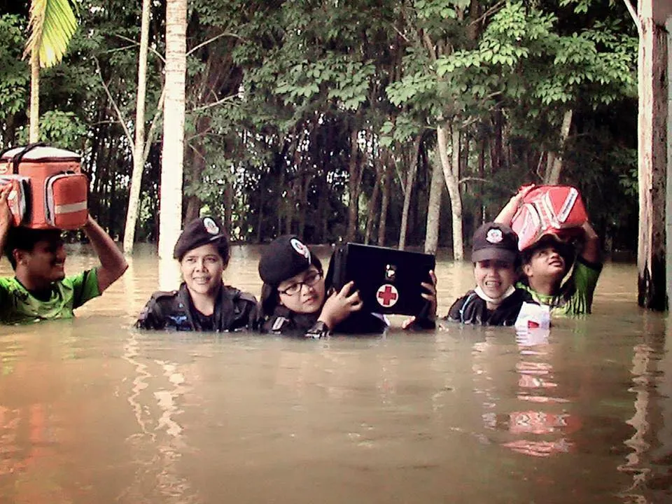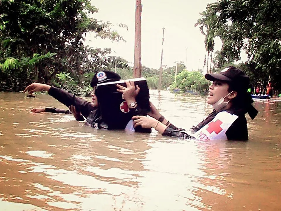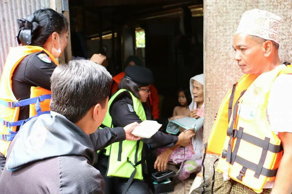 ชื่นชมทหารหญิงลุยน้ำท่วมรักษาพยาบาลผู้ประสบภัยทางใต้