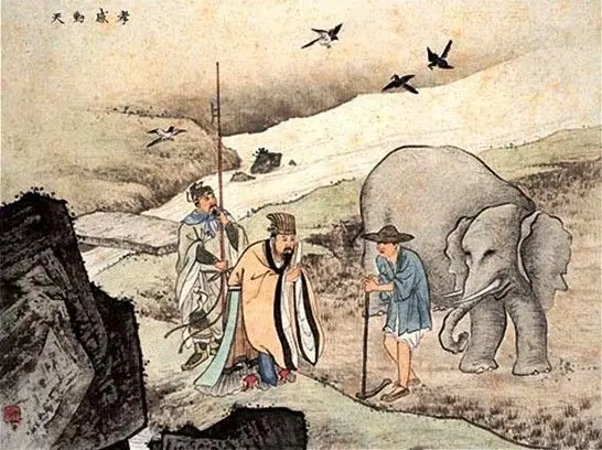 ซุ่น ทำนาอยู่ที่เชิงเขาลิซัน มีช้างมาช่วยไถนา และมีฝูงนกมาช่วยกำจัดวัชพืชอย่างน่าอัศจรรย์ ความกตัญญูกตเวทีของซุ่นทราบถึงพระเจ้าตี้เหยา พระองค์จึงส่งพระโอรสเก้าองค์ไปช่วยซุ่นทำนา และยกพระธิดาสององค์ให้เป็นภริยา
