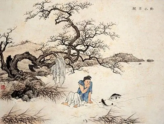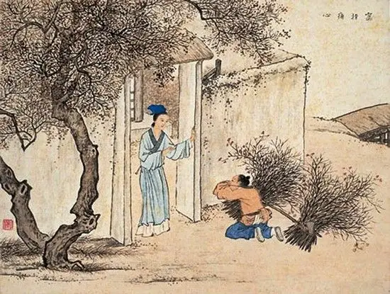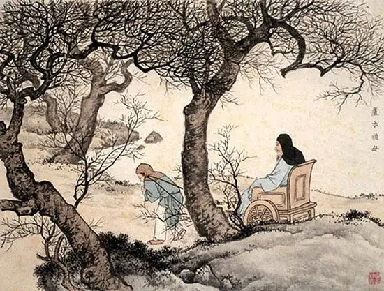 สมัยราชวงศ์โจว จื่อลู่เป็นศิษย์คนหนึ่งในสำนักขงจื๊อ ครอบครัวของเขายากจนมาก ต้องไปเก็บผักป่ามากินประทังชีวิต เพื่อเลี้ยงดูผู้บังเกิดเกล้า เขาต้องไปรับจ้างทำงานไกลบ้าน ครั้นได้เงินมาก็จะซื้อข้าวสาร แล้วแบกกลับบ้านเป็นระยะทางไกลนับร้อยลี้เป็นประจำ