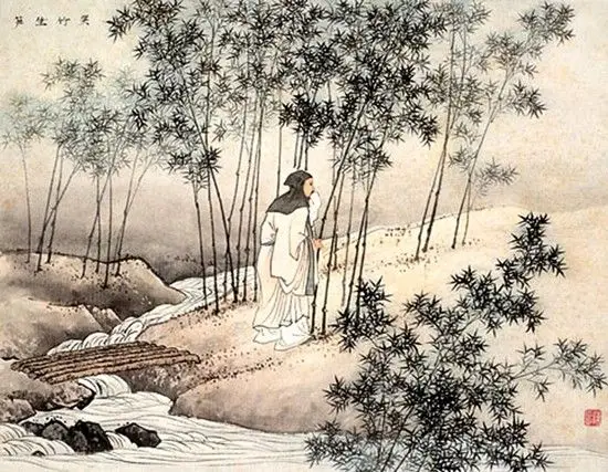 สมัยสามก๊ก เมิ่งจงกำพร้าบิดาตั้งแต่เด็ก อยู่กับมารดาผู้ชราและกำลังป่วยหนัก วันหนึ่งมารดากระหาย ใคร่จะกินหน่อไม้ เมิ่งจงรีบไปเสาะหาในป่าไผ่ แต่พยายามหาเท่าไหร่ก็หาไม่ได้เพราะเป็นฤดูหนาว เมื่อจนปัญญาก็โผเข้ากอดกอไผ่ร่ำไห้อย่างน่าเวทนา ด้วยอานุภาพแห่งความกตัญญูของเขา ฟ้าดินดลบันดาลให้หน่อไม้ผุดขึ้นเหนือพื้นมากมายอย่างน่าอัศจรรย์ เขาดีใจมาก ขอบคุณฟ้าดิน แล้วรีบขุดเอาไปปรุงอาหารให้มารดากิน จากนั้นมาอาการป่วยของนางก็หายวันหายคืนจนเป็นปกติ