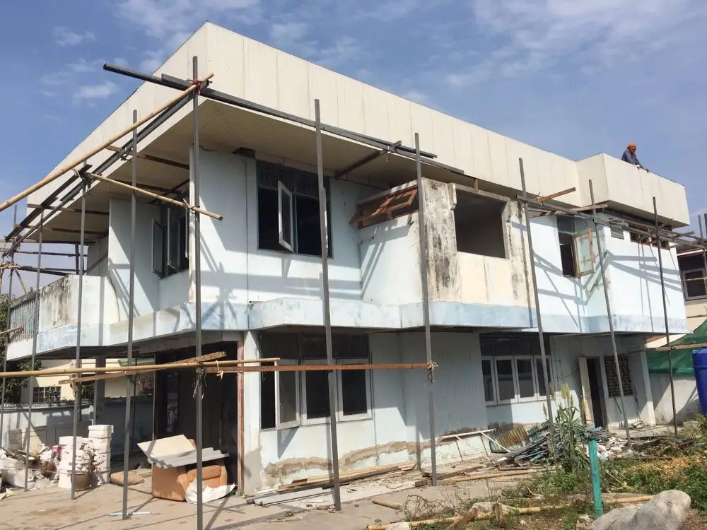 2.ใช้สกิมโคส หรือ ซ่อมแซมรอยของผนังคอนกรีตให้เรียบร้อยก่อน ถ้ารอบแตกใหญ่ ซ่อมด้วยปูนฉาบอะคริลิค หรือปรึกษาวิศวกร