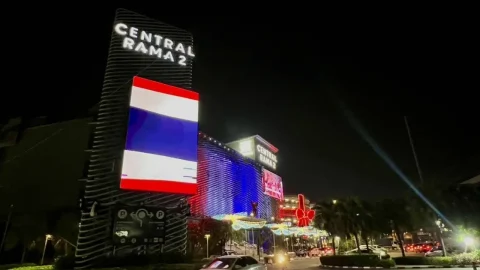 ศูนย์การค้าเซ็นทรัล เปิดไฟสีธงชาติ เพื่อส่งกำลังใจถึงทหารที่ปฏิบัติหน้าที่ชายแดน