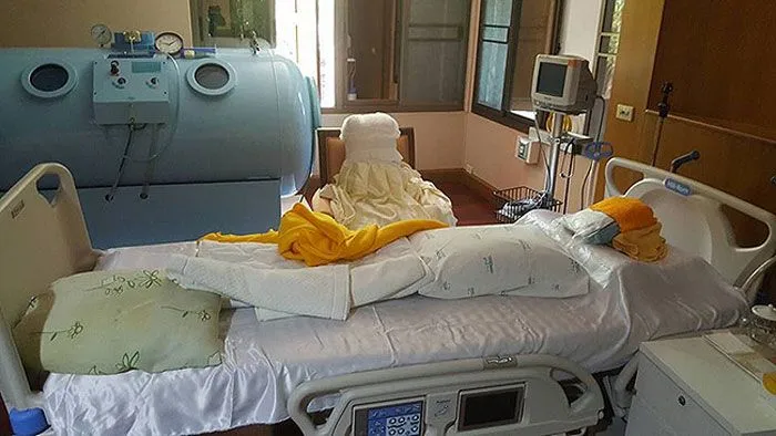 เครื่อง Hyperbaric chamber (สีฟ้าทรงกลมเหมือนแคปซูล)พบในห้องรักษาตัวพระธัมมชโยที่วัดพระธรรมกาย