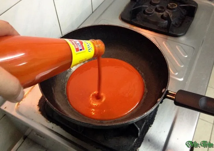 เทซอสพริกทั้งขวดเลยในกระทะ หม้อ หรืออะไรก็ตามที่สามารถทนความร้อนได้ครับ