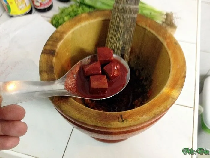 ใส่เต้าหู้ยี้ 4 ชิ้นพร้อมน้ำของมันลงไป ตามภาพครับ