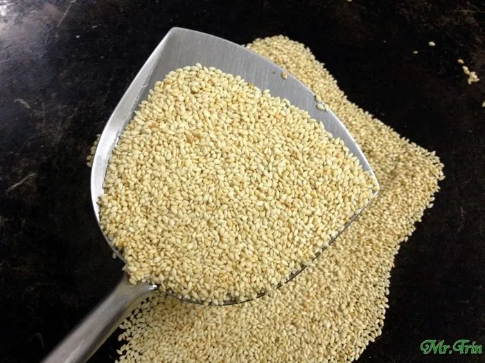 งาขาวผมใช้ประมาณ กำมือนะครับ หอมดี คั่วไฟอ่อนๆ จนได้สีแบบนี้ เวลาคั่วได้ที่แล้วกลิ่นมันจะออกครับ