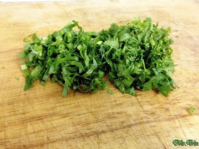 ซอยผักชีและผักชีฝรั่งแบบนี้ครับ จากนั้นพักมันเอาไว้ก่อน แล้ว.....