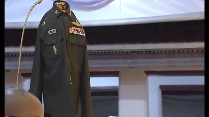 ฉลองพระองค์ พระบาทสมเด็จพระปรมินทรมหาภูมิพลอดุลยเดช ที่อัญเชิญในพิธีกงเต๊ก
