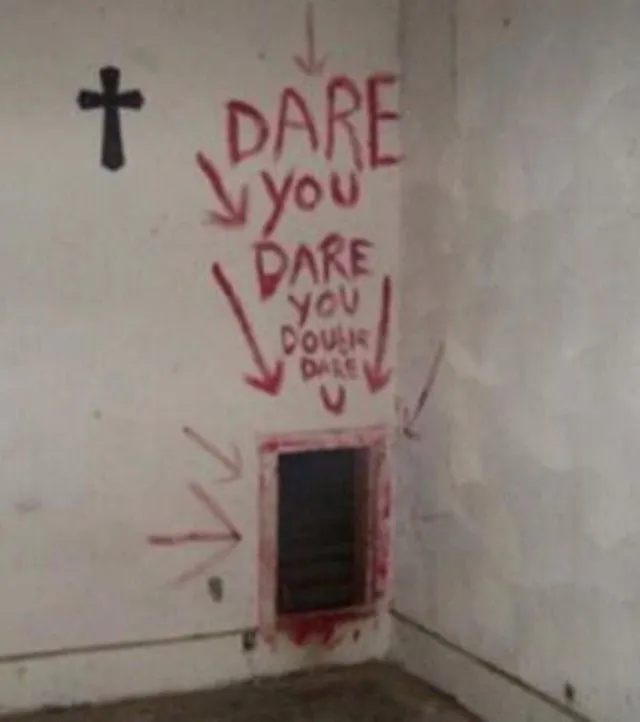 ข้อความท้าทายน่าขนลุกในโบสถ์ร้าง “กล้าเข้าไปในนี้ไหม”