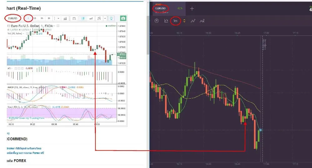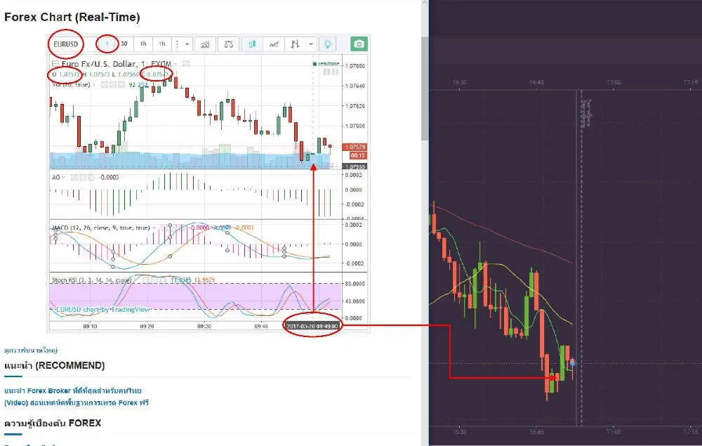 ราคาเปิด 1.07572 ราคาปิด 1.07573 แต่กราฟแท่งเทียนของสยามออฟชันกลับเป็น "สีแดง!!!" Why?