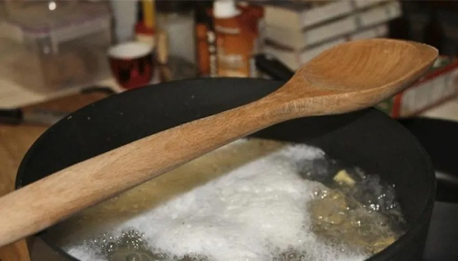 8. วางช้อนไม้บนหม้อเพื่อป้องกันไม่ให้น้ำเดือดทะลัก