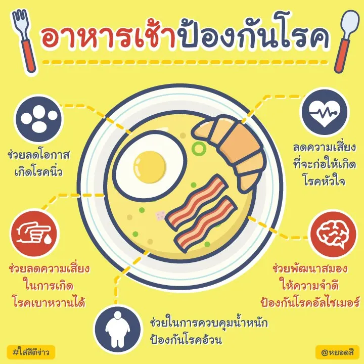 อาหารเช้าถือเป็นมื้อที่มีประโยชน์มากๆสำหรับคนทุกวัย ซึ่งควรเลือกทาานอาหารที่ให้พลังงานประมาณ 400 - 450 กิโลแคลอรี และควรจะเลี่ยงอาหารสำเร็จรูป เพราะมีสารอาหารที่มีประโยชน์น้อยและมีโซเดียมสูงนะคะ เช่น มาม่า พริกน้ำปลา