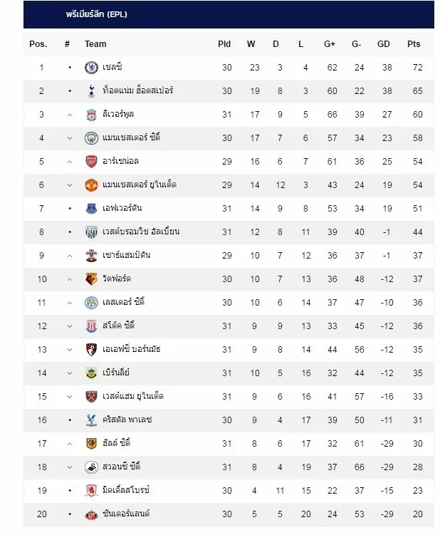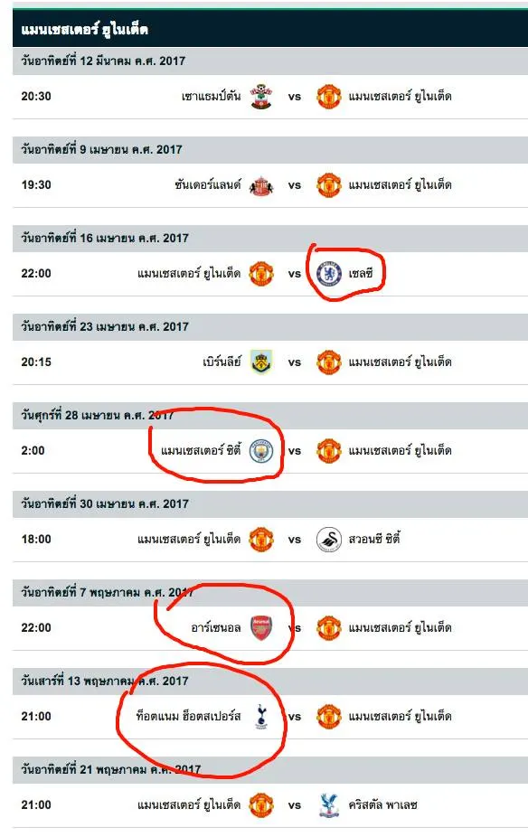 รวมทั้งโปรแกรมทีม คู่อริ อย่าง ผีแดง แมนยู ที่ล่าสุดหล่นไปอยู่ในที่ที่คุ้นเคย (อันดับ 6 อีกครั้ง)