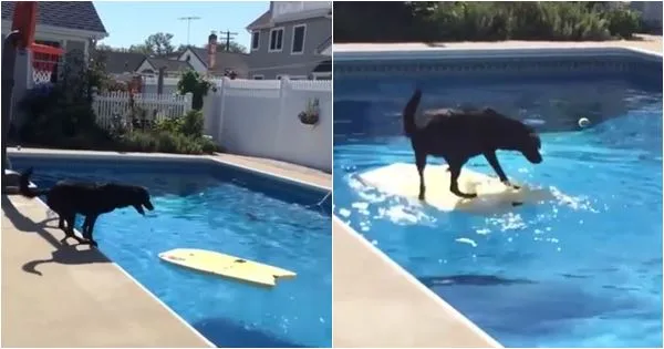 ตอนแรกนึกว่ามันจะกระโดดลงไปในน้ำ แต่ผิดคาด.. หมามันเลือกใช้วิธีเขี่ย โฟมว่ายน้ำ ให้เข้ามาใกล้ ๆ ก่อนจะกระโดดขึ้นโฟม แล้วพายไปคาบลูกบอลขึ้นมา เจ๋งปะล่ะ !! ฉลาดแค่ไหน ...ดูกันนนนน