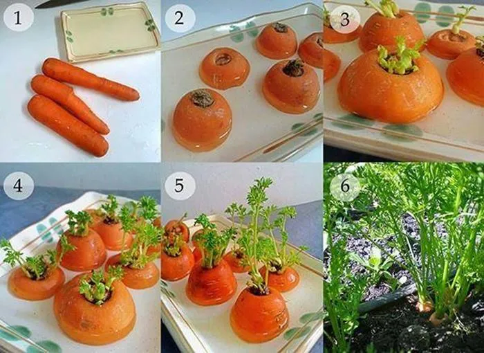 แครอท ตัดเฉพาะส่วนหัววางไว้ในภาชนะแบนๆ ก็เรียบร้อยแล้วจ้าา ใบแครอทก็อร่อยมากๆ อีกด้วย