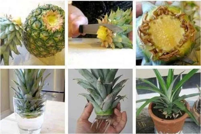 ให้ตัดส่วนใบของ สับปะรด ออก แล้วเอาไม้จิ้มฟันเสียบไปที่ก้าน จากนั้นก็เอาไปแช่น้ำ แล้วเอาออกตากแดดวันเว้นวัน พอเริ่มเห็นรากที่งอกออกมาแล้ว ก็นำลงปลูกกับดินได้เลย