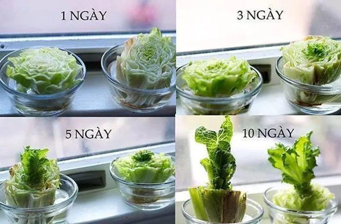 นำส่วนโคน ผักกาด ใส่ถ้วยก้นลึก แล้วเทน้ำลงไปประมาณครึ่งนิ้ว วางเอาไว้ริมหน้าต่างที่มีแดดรำไร ภายใน 3-5 วันก็จะเริ่มแตกยอดใบใหม่ออกมา พอเริ่มแตกยอดสูงได้ที่ก็ย้ายลงปลูกในดินต่อได้เลย