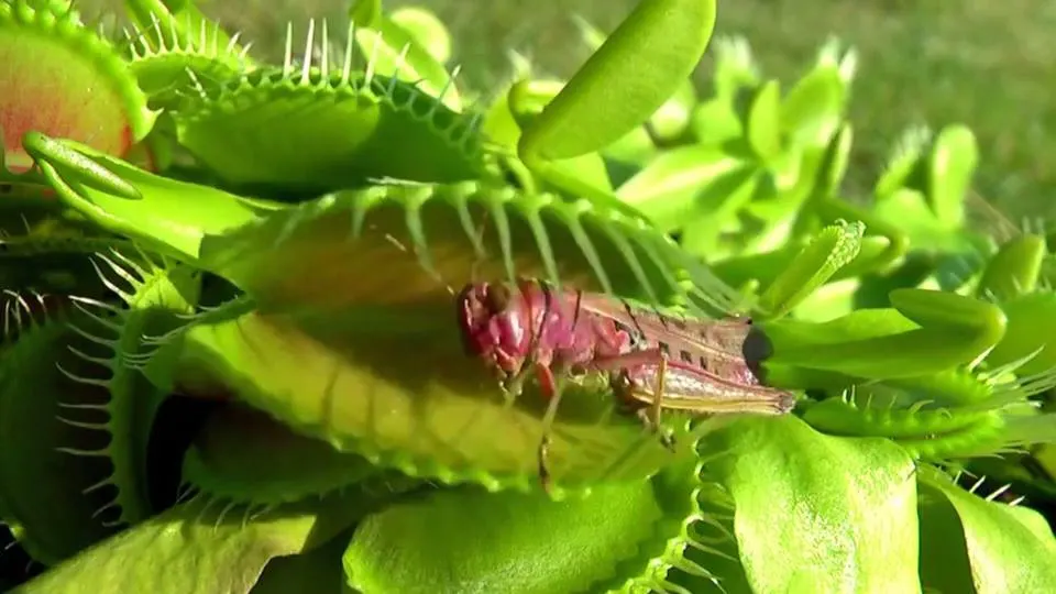 เซลล์นั้นจะตอบสนองโดยสูบไอออนออกซึ่งอาจจะทำให้น้ำมีการเดินไปตามทางโดยการออสโมซิส (การยุบลงของเซลล์ในเส้นกลางไป) หรือไม่ก็ทำให้เกิดกรดไปกระตุ้นให้มีการยืดขยายของเซลล์มากขึ้น (acid growth) อย่างรวดเร็วกลไกการทำงานนั้นยังคงเป็นที่ถกเถียงกันอยู่ แต่ในทุกๆกรณีการเปลี่ยนรูปทรงของเซลล์ในเส้นกลางใบปล่อยให้กลีบยึดติดไว้ภายใต้ความตึงนำไปสู่การพับตัวของกับดัก,การดีดอย่างรวดเร็วจากส่วนนูนไปยังส่วนเว้า