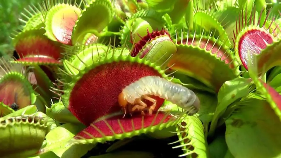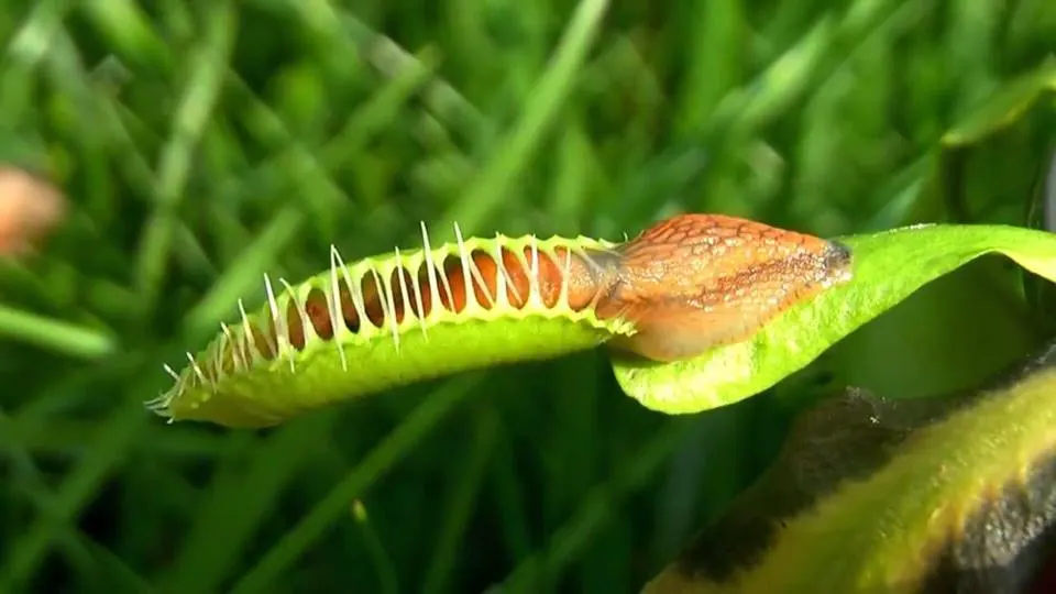 กับดักแบบตะครุบของกาบหอยแครง ปิดอย่างรวดเร็วเมื่อเมื่อถูกกระตุ้นระหว่างกาบทั้งสองโดยเหยื่อ
