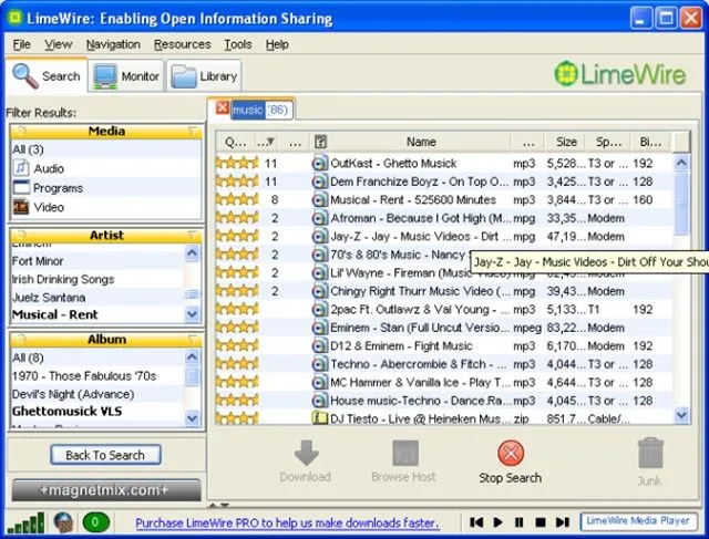ต้องใช้ความสามารถพิเศษในการค้นหาเพลงที่ถูกต้องที่จะโหลดจาก Limewire หรือ Kazaa