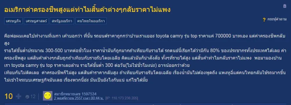 ที่พูดมาทั้งหมดไม่ได้ว่าอยากจะให้ค่าครองชีพสูงนะครับ ถ้าค่าครองชีพต่ำก็ดีครับผมก็ชอบ เพียงแต่ตอนนี้รู้ศึกว่ามันฝืนธรรมชาติเท่านั้นเอง