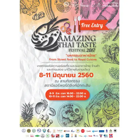 Amazing Thai Taste Festival 2017 “มหกรรมอาหารไทย” From Street Food to Royal Cuisine" เทศกาลแห่งความอร่อยที่รวบรวมอาหารไทย ร้านค้า และการแสดง มาไว้ภายในงานเดียว 8-11 มิถุนายน 2560 ณ ลานกิจกรรม สถานีแอร์พอร์ตลิงค์มักกะสัน 18.00 น. เป็นต้นไป รายละเอียดเพิ่มเติมที่ : https://goo.gl/C3fXdZ หรือ www.amazingthaitaste.com