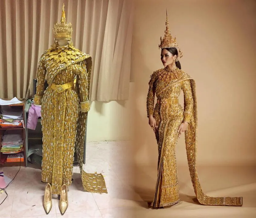สุดยอด!! นี่คือชุดรีไซเคิล!! ทำจากกระสอบ และ ถุงขนม แรงบันดาลใจจากชุดประจำชาติไทย Miss Universe 2017 ที่น้ำตาล ชลิดาใส่ประกวด