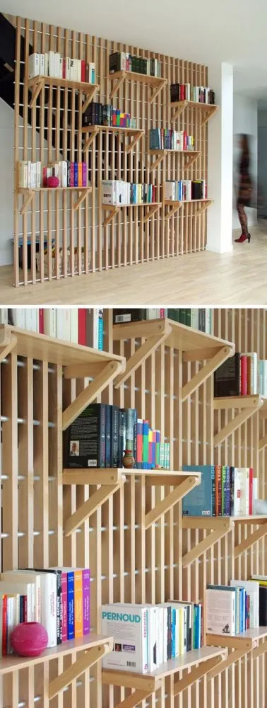 6. แบบบันไดที่เชื่อมลูกนอนของบันไดเชื่อมต่อเป็นชั้นวางหนังสือ ใช้พื้นที่ได้อย่างเต็มที่และสร้างสรรค์มากๆ