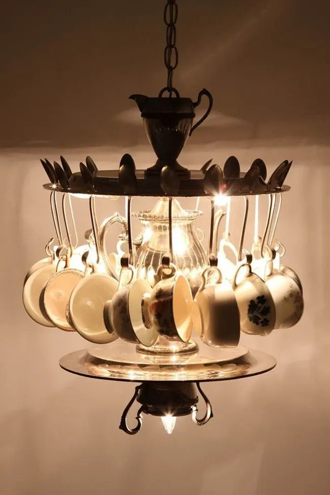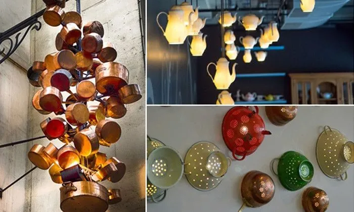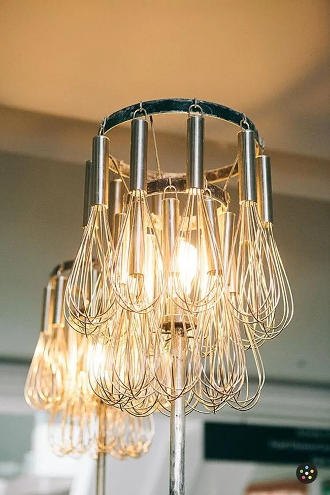 ในวันนี้เราได้เลือกไอเดียบางอย่างที่คุณสามารถดูเป็นตัวอย่างและสามารถนำข้าวของเครื่องใช้เก่าๆ ในครัวมาใช้เป็นวัสดุในการทำโคมไฟระย้าที่โดดเด่นสะดุดตา รับรองว่ามันจะสามารถสร้างความประทับใจให้กับคุณและผู้ที่พบเห็นได้เป็นอย่างดี