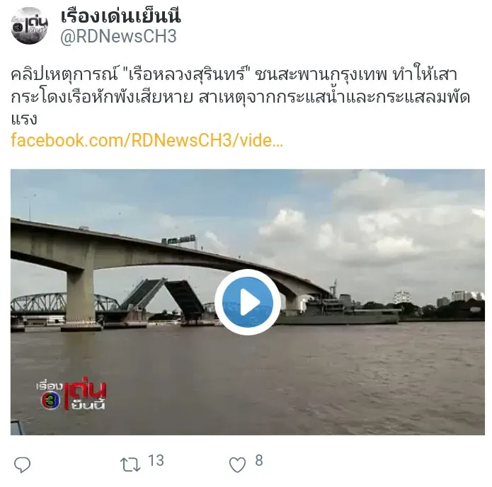 เรือหลวงสุรินทร์ชนสะพานกรุงเทพ จากอุบัติเหตุกระแสน้ำ