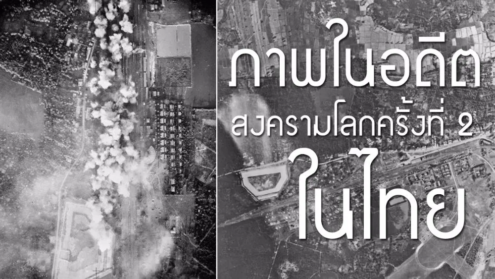 ภาพการโจมตีทางอากาศ บริเวณสถานีรถไฟนครราชสีมา (หัวรถไฟ) จากสัมพันธมิตร ในช่วงสงครามโลกครั้งที่สอง
