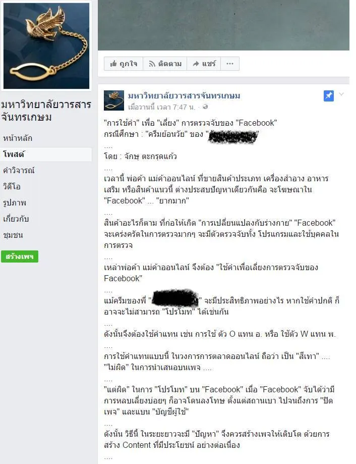 เพจ ม.ดัง เผย ทำไมเพจขายครีมบางยี่ห้อ ถึงรอดการตรวจจับ ของ Facebook