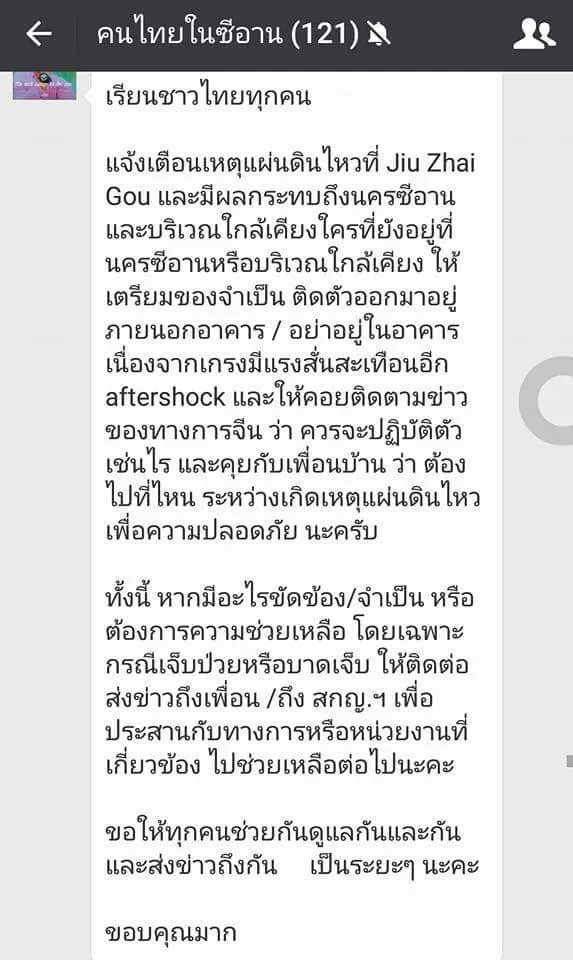 ข่าวด่วน เกิดเหตุแผ่นดินไหวขนาด 7.0 ที่ จิ่วไจ้โกว มณฑลซื่อชวน (เสฉวน) เมื่อเวลา 21.19 น. เวลาประเทศจีน โดยแรงสั่นสะเทือนทำให้ผู้คนในเขตเมืองซีอาน มณฑลส่านซี และหลายพื้นที่ในมณฑลกานซู่ มณฑลหลานโจว รู้สึกถึงแผ่นดินไหวได้