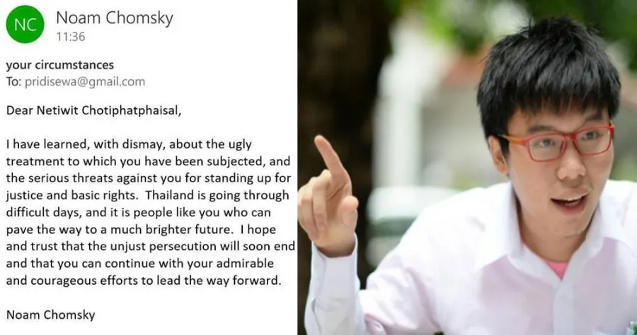 และเมื่อเช้านี้ก็มีกำลังใจใหญ่ส่งมาให้ผมอย่างไม่ทันตั้งตัว นั่นคือ ศาสตราจารย์ นอม ชอมสกี้ (Noam Chomsky) ปัญญาชน นักภาษาศาสตร์และนักคิดที่สำคัญที่สุดคนหนึ่งของโลก