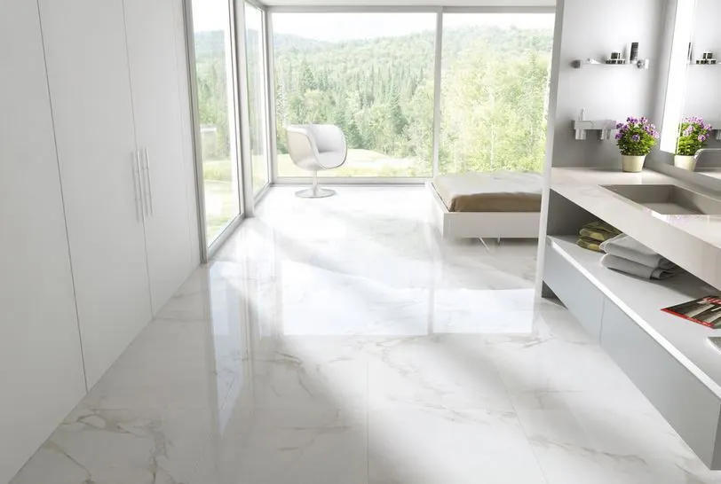 พื้นที่ที่ต้องการความสวยงาม เช่น ห้องโถง ห้องรับแขก ห้องนอน อาจเลือกกระเบื้องหน้าเงามัน ช่วยเพิ่มความสวยงามให้กับห้องที่เราต้องการตกแต่ง