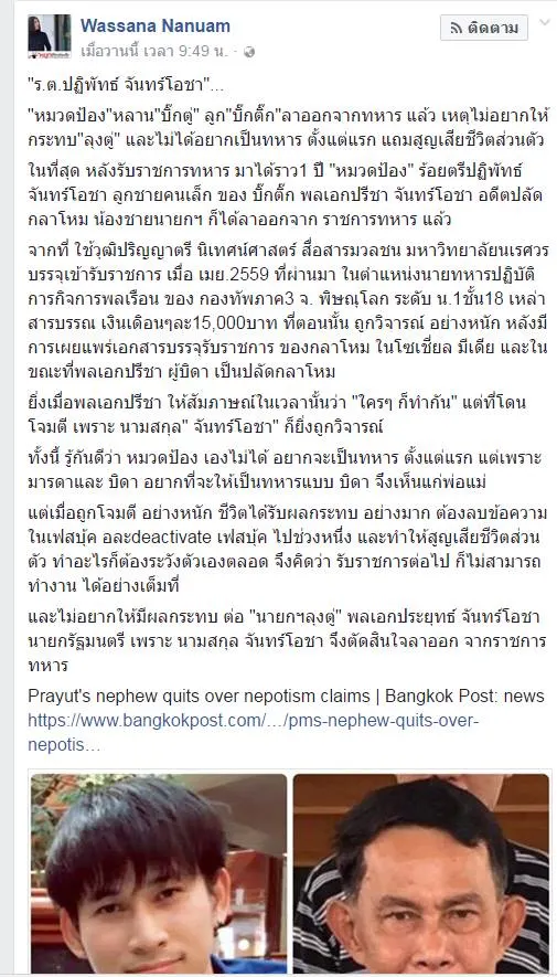 Prayut's nephew quits over nepotism claims | Bangkok Post: newshttps://www.bangkokpost.com/…/pms-nephew-quits-over-nepotis…
