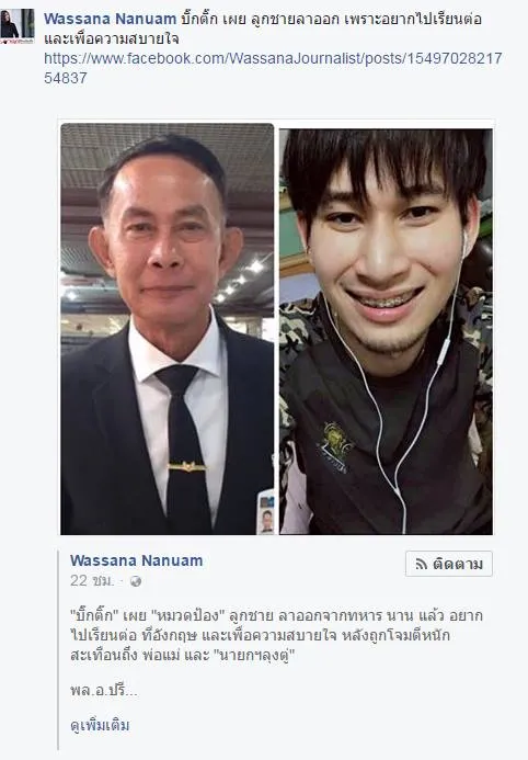 "หมวดป้อง"หลาน"บิ๊กตู่" ลูก"บิ๊กติ๊ก"ลาออกจากทหาร แล้ว เหตุไม่อยากให้กระทบ"ลุงตู่" และไม่ได้อยากเป็นทหาร ตั้งแต่แรก แถมสูญเสียชีวิตส่วนตัว