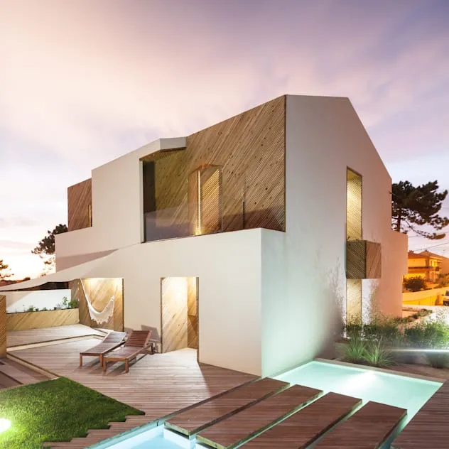 เห็นบ้านดีไซน์สวยๆ แบบนี้แล้วแทบไม่อยากกระพริบตา เป็นบ้านสีขาวสองชั้นที่ออกแบบได้โมเดิร์นสุดๆ ตัวบ้านเป็นปูนสีขาวผสมกับการใช้ไม้โทนสีธรรมชาติ สองสิ่งนี้มีความเข้ากันเป็นอย่างมากทำให้บ้านดูไม่โมเดิร์นมากจนเกินไปเพราะได้ความอบอุ่นอ่อนโยนของไม้เข้ามาช่วยเสริม ยิ่งนำไม้แผ่นมาวางในแนวเฉียง แบบนี้ด้วยแล้วทำให้ยิ่งดูทันสมัยมากเข้าไปอีก