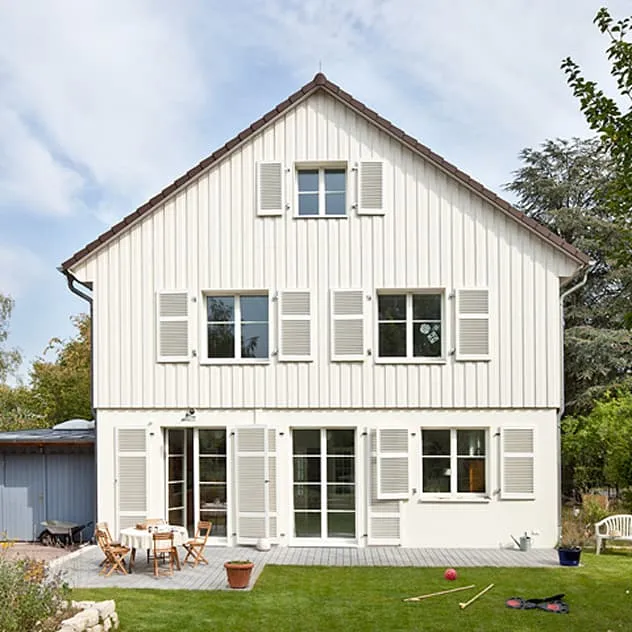 นอกจากความสวยตามธรรมชาติของเนื้อไม้แล้วเรายังทาสีบ้านไม้ได้อีกด้วยนะ อย่างเช่นบ้านไม้หลังนี้ที่ใช้สีน้ำเงินเข้มเกือบทั้งหลัง เว้นส่วนของระเบียงชั้นสองและส่วนของโรงรถข้างบ้านที่ยังคงเป็นสีไม้ธรรมชาติตามเดิม สีของหลังคาบ้านก็ยังใช้สีน้ำเงินใกล้เคียงกัน ทำให้บ้านหลังนี้ดูใหญ่และกลมกลืนกันไปทุกส่วนทีเดียว