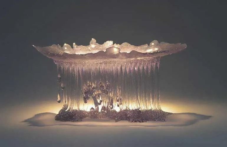 โต๊ะแก้วแมงกระพรุน ประติมากรรมจากแก้วที่สวยงาม