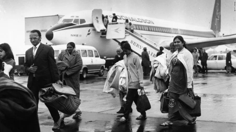 2. ผู้ลี้ภัยชาวอินเดียเดินทางมาถึงลอนดอนหลังจากถูกไล่ออกจากยูกันดาเมื่อปี 1972