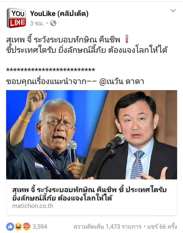 ต้ายๆตายๆ 1.4พันคอมเม้นท์ ไม่ใช่ข่าวดี คนสาปเยอะกว่าจริงๆๆ!!! สุเทพ จี้ ระวังระบอบทักษิณ คืนชีพ ❗️ ชี้ประเทศใดรับ ยิ่งลักษณ์ลี้ภัย ต้องแจงโลกให้ได้