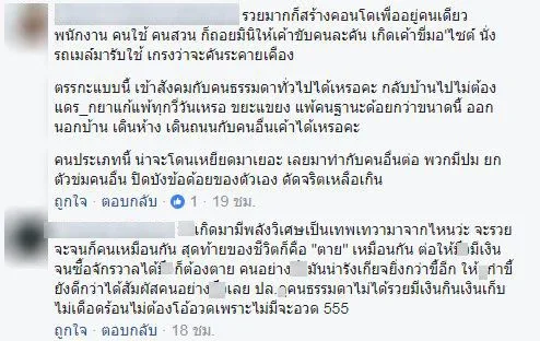 ด้านชาวเน็ตต่างเข้ามาวิพากษ์วิจารณ์ชายคนนี้กันอย่างดุเดือด ส่วนใหญ่ไม่พอใจ พร้อมบอกว่า ตรรกะแบบนี้เข้าสังคมกับคนธรรมดาทั่วไปได้ยังไงกัน และถ้ารวยมากก็สร้างคอนโดเพื่ออยู่คนเดียวไปเลย อีกทั้งบางทีคนที่ขี่รถมอเตอร์ไซค์เขาอาจจะรวยกว่าคุณก็ได้