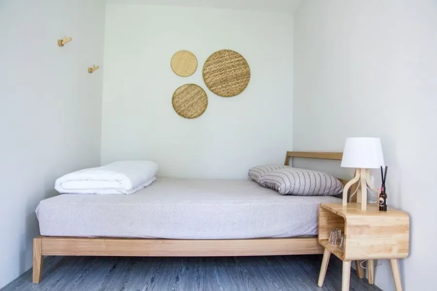 หยิบงานหัตถกรรมพื้นบ้านมาตกแต่งให้ห้องนอนดูสวย อย่างเช่นไอเดียนี้หยิบเอากระด้งที่ใช้ประจำมาตกแต่งให้ผนังห้องดูโดดเด่น ยิ่งจับคู่กับเตียงนอนไม้ โต๊ะข้างเตียงไม้ที่มีความเข้ากัน เป็นการนำของเก่าที่ไม่ใช้แล้วมาทำให้เกิดประโยชน์
