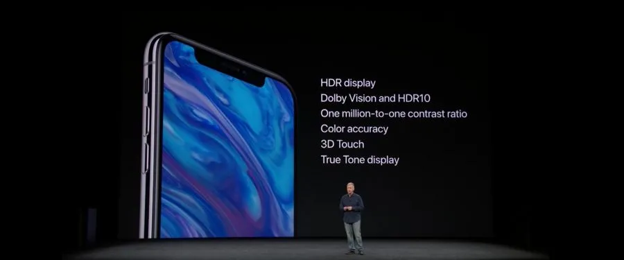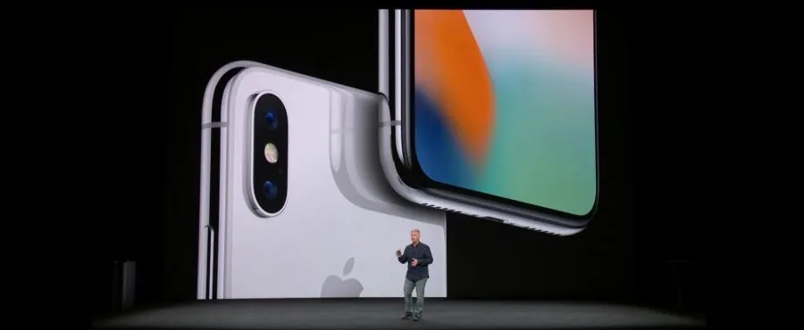 iPhone X ใช้ดีไซน์ตรงกับข่าวหลุดที่ออกมาก่อนหน้านี้ หน้าจอ OLED เกือบไร้ขอบ มีแหว่งด้านบน ตัดปุ่มโฮมออก เปลี่ยนมาใช้กล้องหน้า True-Depth สแกนใบหน้าเพื่อปลดล็อคแทน โดยมีราคาเริ่มต้นที่ 999 ดอลลาร์