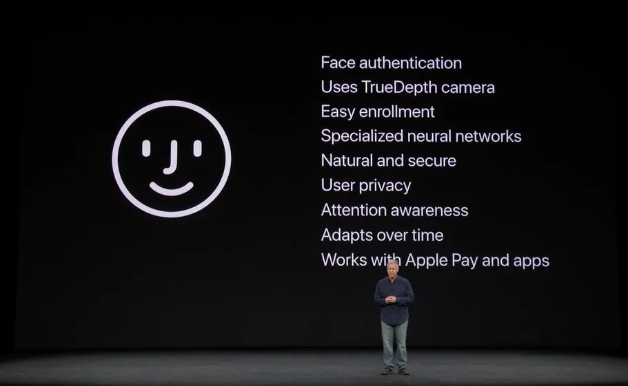 ส่วนฟีเจอร์สแกนลายนิ้วมือ Touch ID ถูกตัดออกไป เปลี่ยนมาใช้การปลดล็อคด้วยการสแกนใบหน้า Face ID แทน โดยใช้ระบบกล้องและเซ็นเซอร์ด้านหน้าหลายตัว ทำงานร่วมกันร่วมกับเทคนิค machine learning สร้างโมเดลใบหน้าที่แม่นยำ